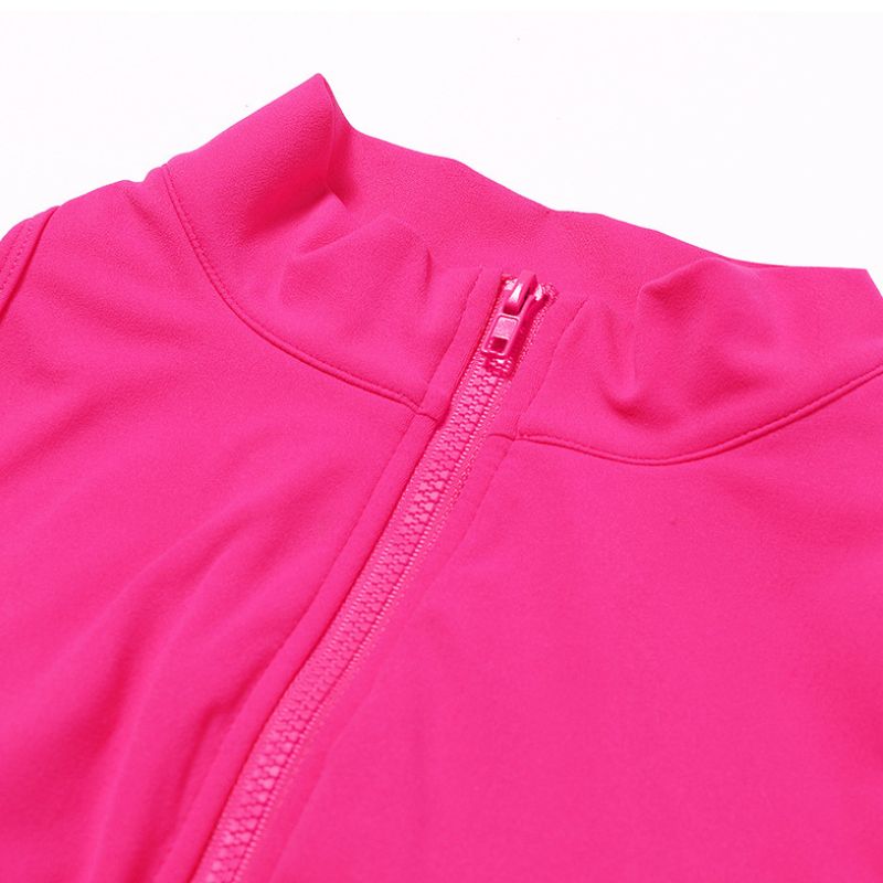 • Stand collar half zipper design for a sleek look + elastic waist design to modify the waist line