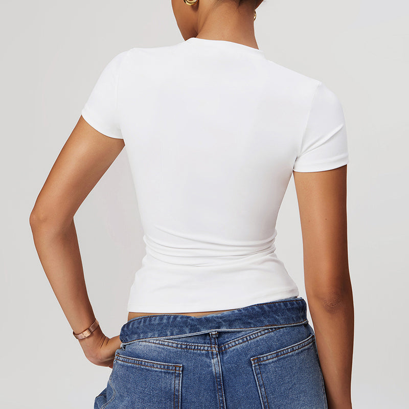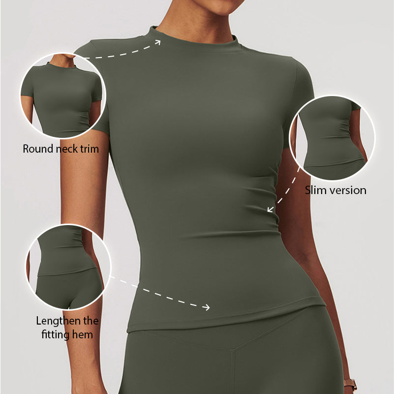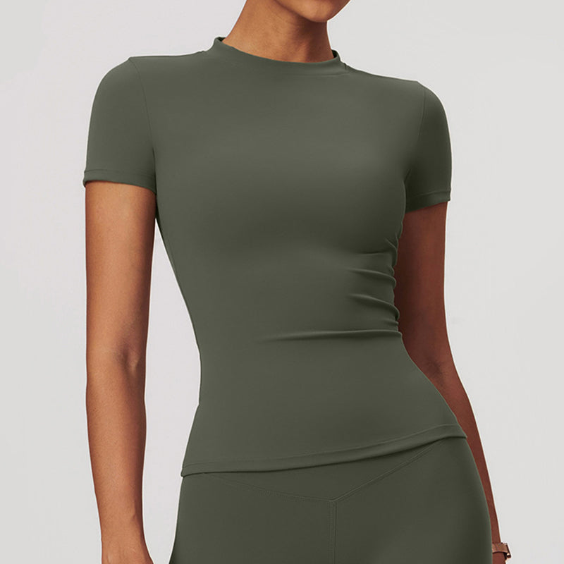 BRUSHED SHORT SLEEVE AND ROUND NECK YOGA TOP