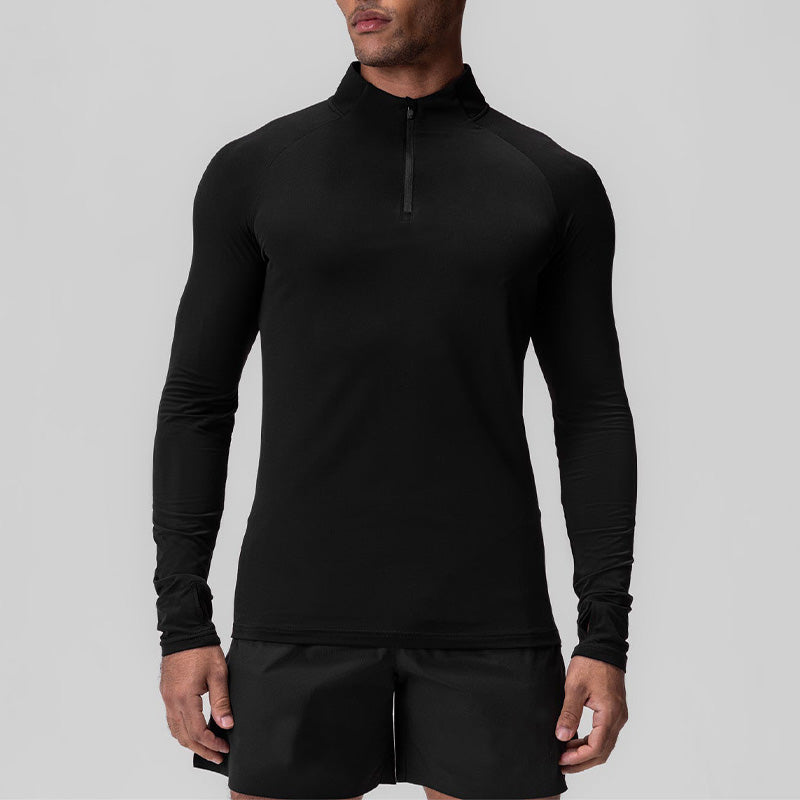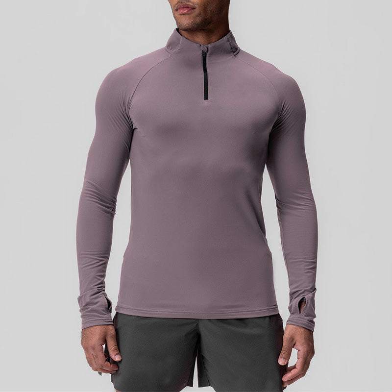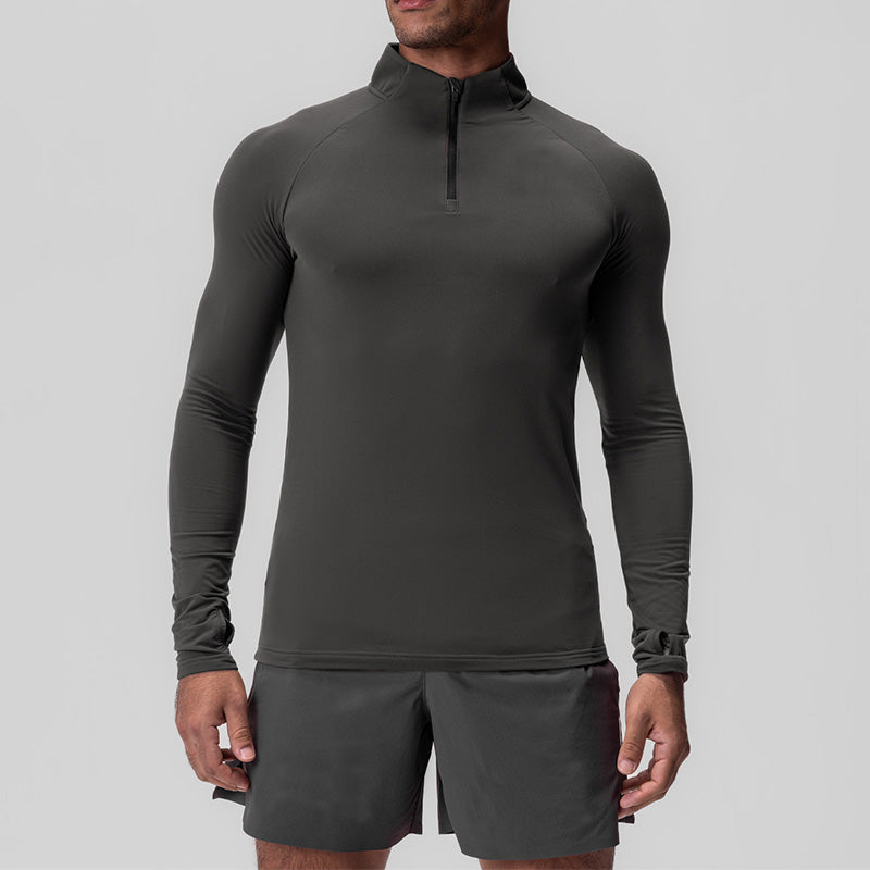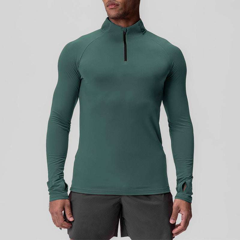 MEN'S QUICK DRYING HALF ZIPPER SOLID COLOR LONG SLEEVED SPORTS TOP