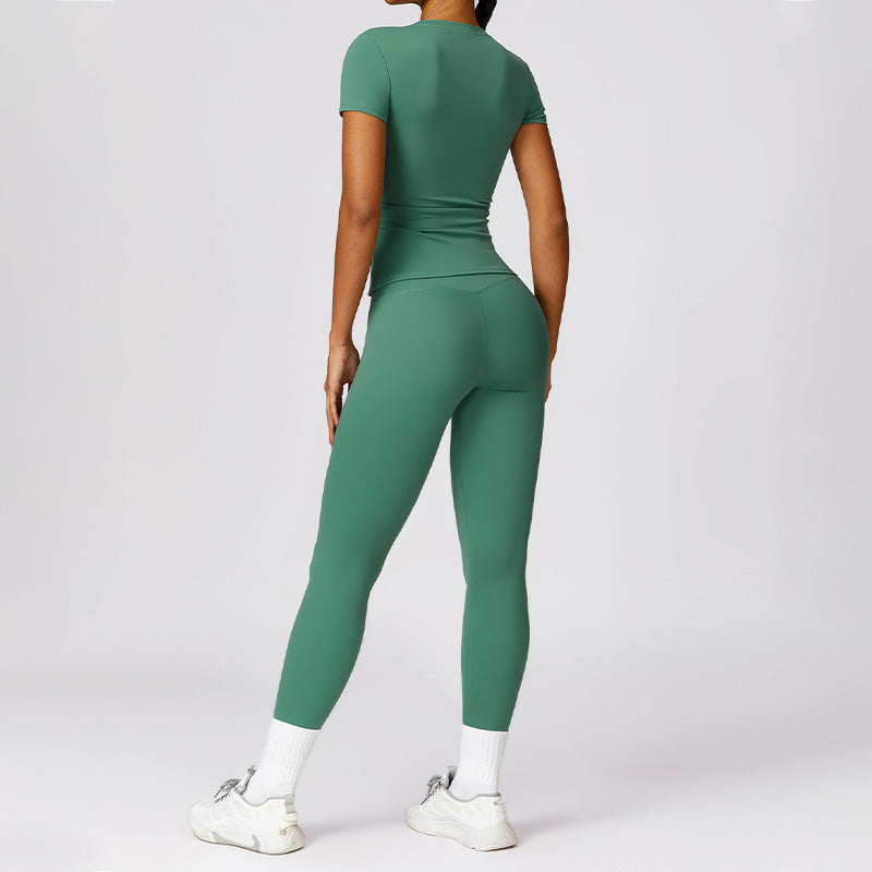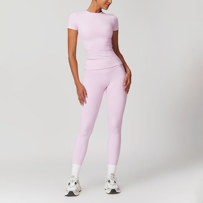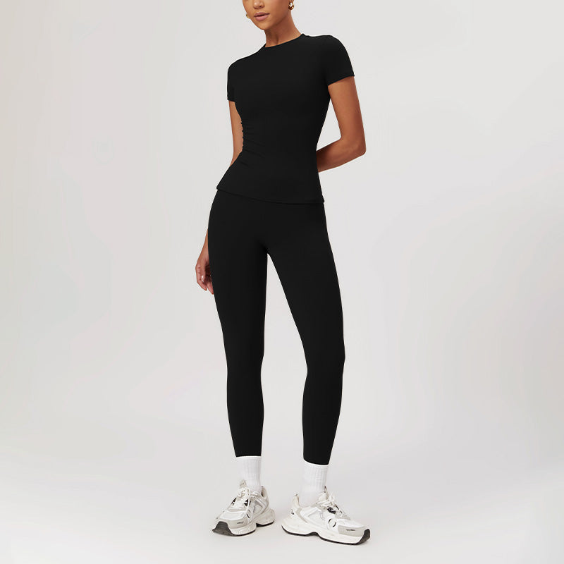 • Breathable crew short-sleeved top & high-waisted quick-dry yoga leggings