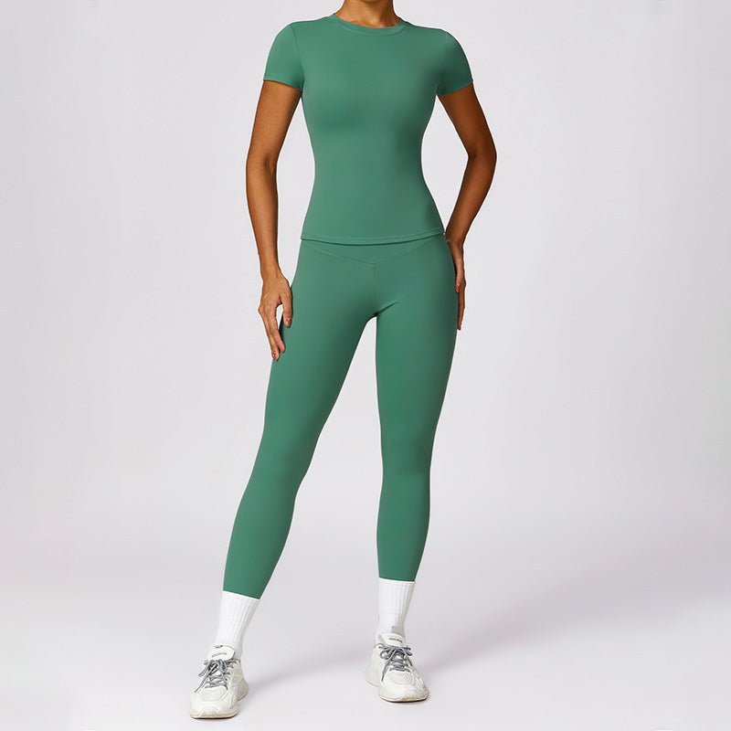 Skinny Short Sleeve Yoga Top + Leggings 2-piece Set