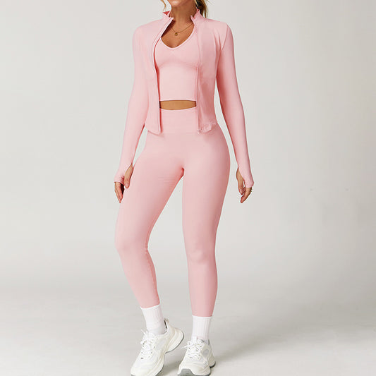 Seamless Yoga Bra + Legging + Long Sleeve Full Zipper Jacket 3-piece Set