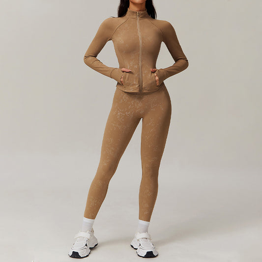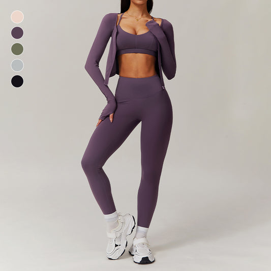 High-waisted Breathable Yoga Bra + Leggings + Jacket 3-piece Set