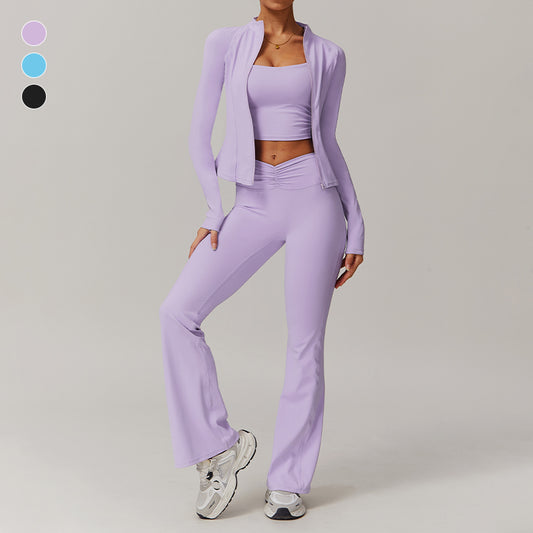 Racerback Sports Bra + high waist leggings +outdoor jacket 3-piece set