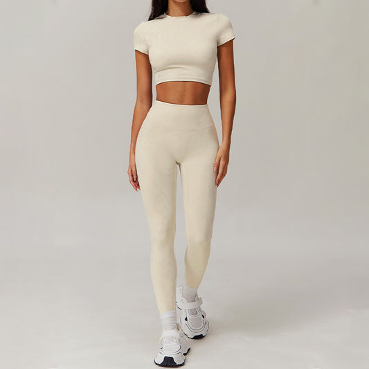 Fitness Brushed Short Sleeve Yoga Top & High-waisted Leggings Set