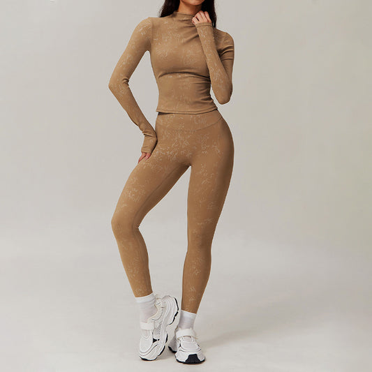 Brush long sleeve sports top & high waist Fitness leggings 2 piece Set