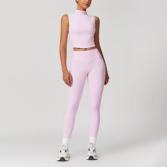Hochkragen Sport Tank Top + dünne Leggings 2 -Stück -Set