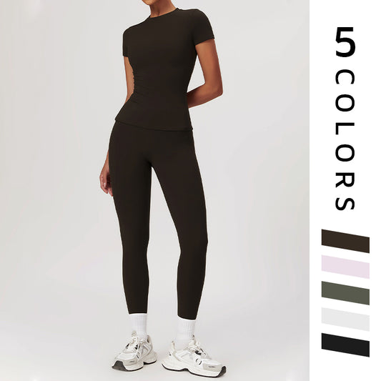 Skinny Short Sleeve Yoga Top + Leggings 2-teiliges Set