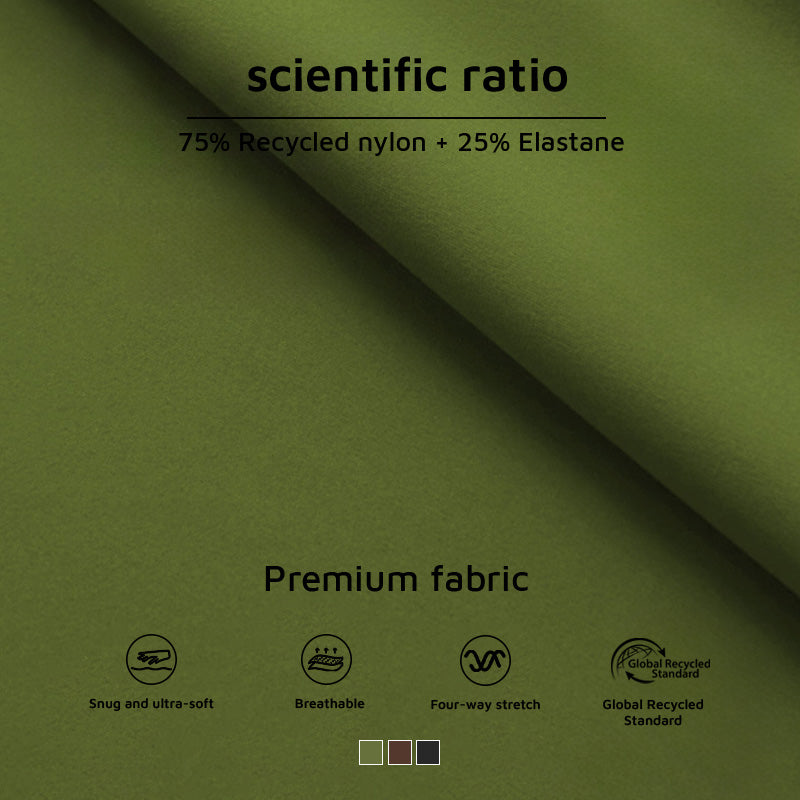 Fabric Composition: • 75% eco-friendly nylon + 25% spandex Fabric Features: • So buttery soft and fit body • Durable and shape-retaining • Four-way stretch • Moisture-wicking