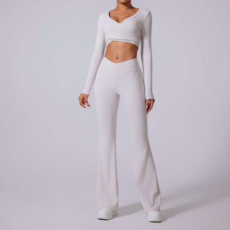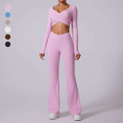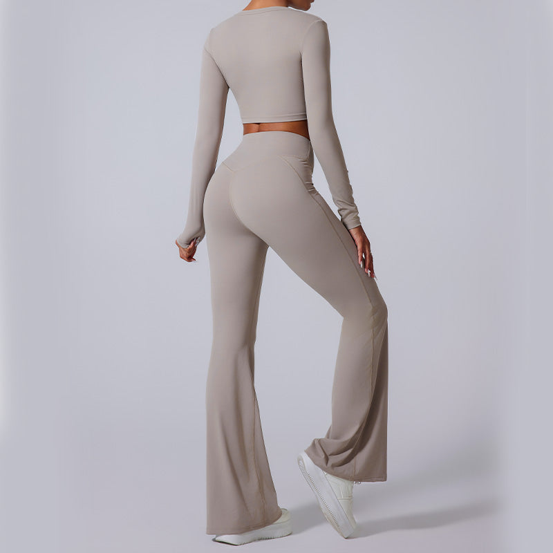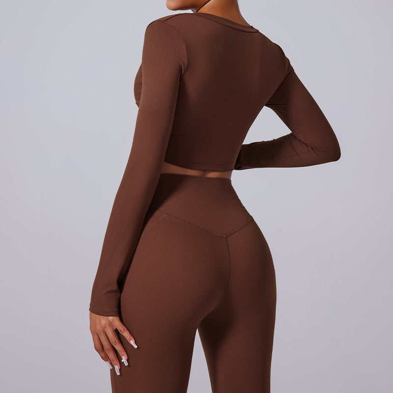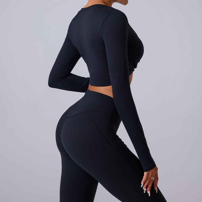 • Atmungsaktives schlanker Langarmsport -Crop -Top -Design Und Hoch taillierte Yoga ausgestattete Beinhosen Set