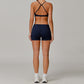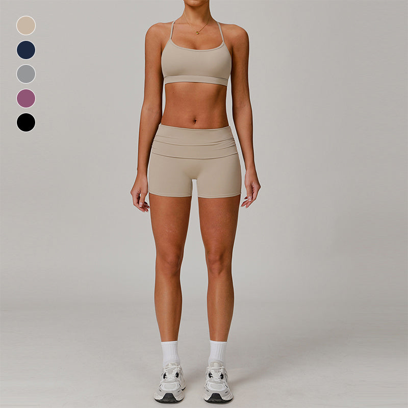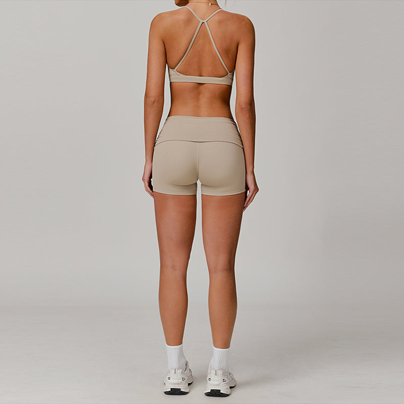 Cross Rücken- und Dünngurte Sport BHs + High-Tailled-Shorts 2-teilige Set