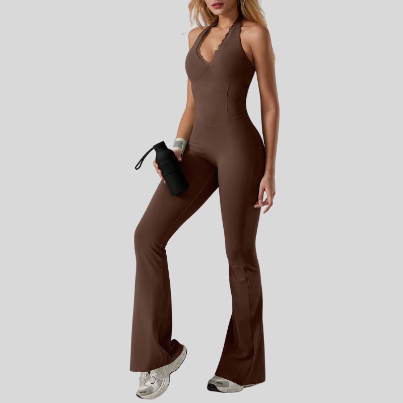 • The lace V-neck lengthens the neck line + the back is hollowed out to show the graceful curves