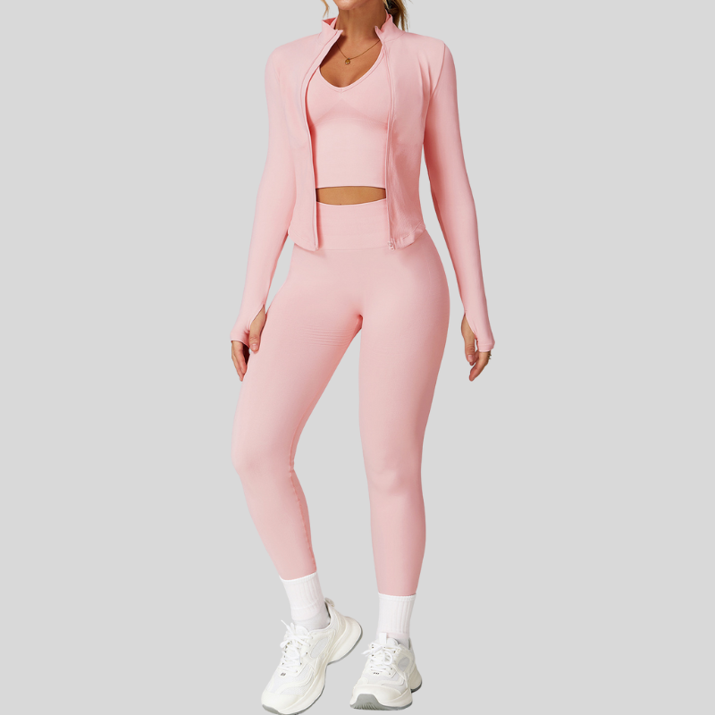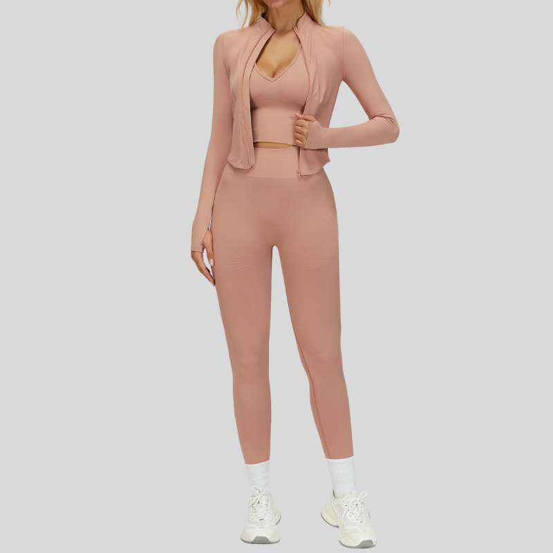 ALL ITEMS>Nahtloser Yoga BH + Legging + Langschläfe Full Reißverpackungsjacke 3-teiliges Set