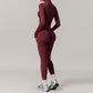• Atmungsaktives Stand-up-Kragen Langarm Sportjacken Top & High Taille Leggings Set Design