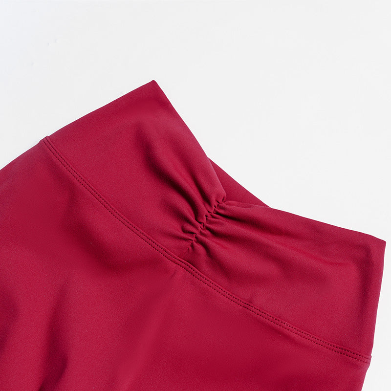 • High-waisted, gathered design at the front to hug the abdomen and lock in the waist, preventing rolling up and sagging.