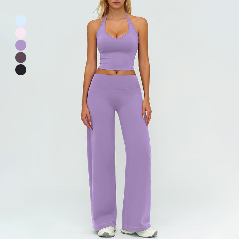 • The V-shaped neckline lengthens the neck line + the backless design shows beautiful curves + the high-waisted wide-leg pants make the legs slimmer and longer Unique Design Points: • The V-shaped neckline design modifies the shoulder and neck lines and highlights the beauty of the lines. • Hollow large backless design is refreshing, breathable and unrestricted, showing off beautiful curves • The extended hem fits comfortably and shapes your waist, hiding your belly. • Loose wide-leg pants are designed to hide your muscles and make you look slimmer, giving you a sense of relaxation. • No awkward line design on the front panel allows for smooth movement without showing any embarrassment • Turn-over waistband design easily covers your belly