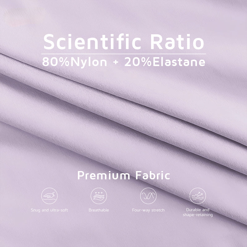 Fabric Composition: • 80% Nylon + 20% Spandex Fabric Features: • So buttery soft and fit body • Durable and shape-retaining • Four-way stretch • Ultra-soft, feels weightless