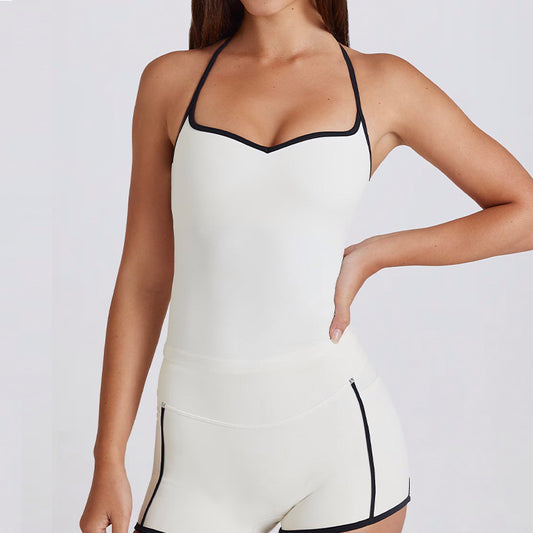 Seamless halter Contrasting Color top + High-waisted leggings 2-Piece Set