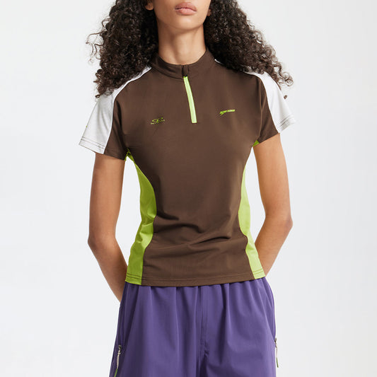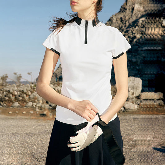 contrasting color Short Sleeve polo shirt tennis Jumpsuit with pockets