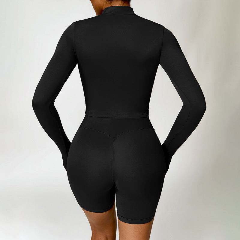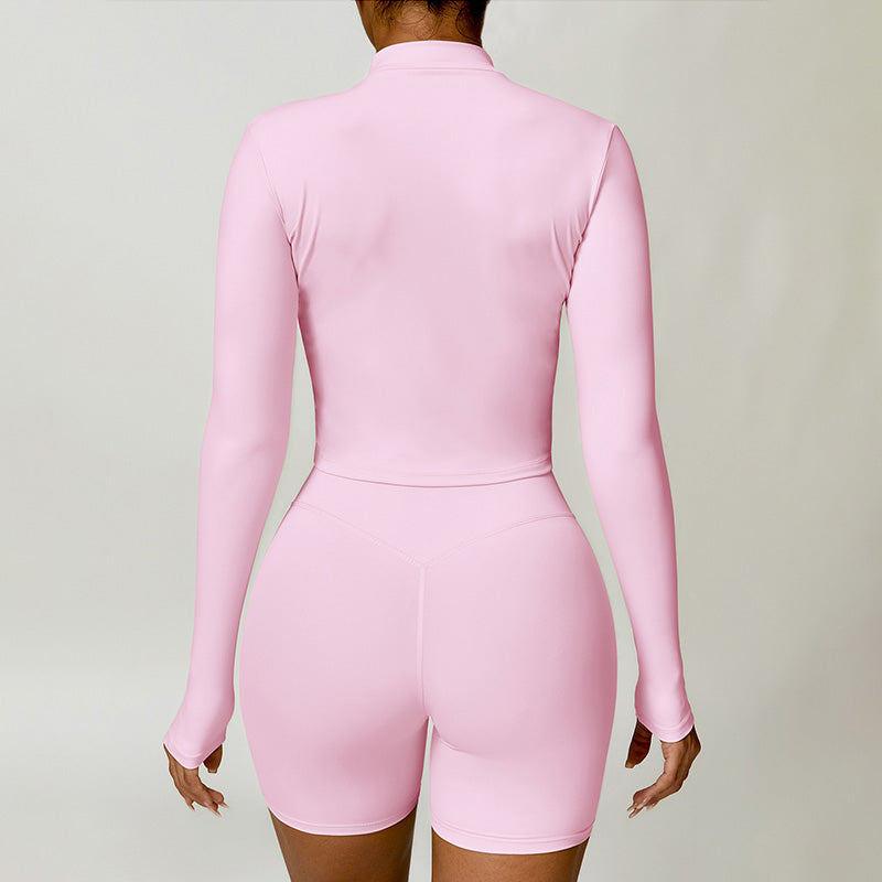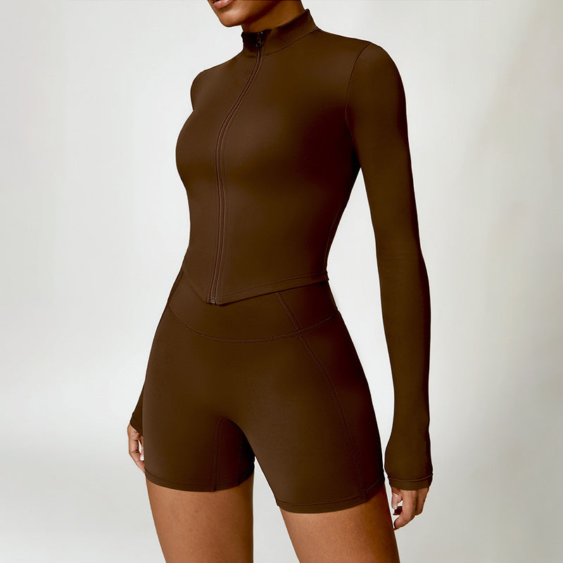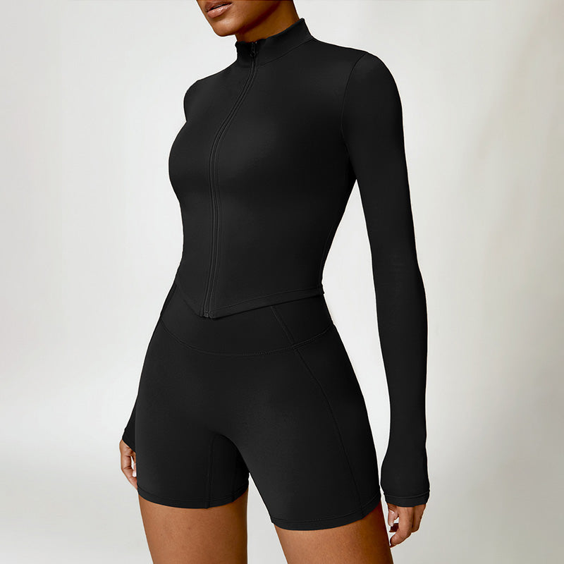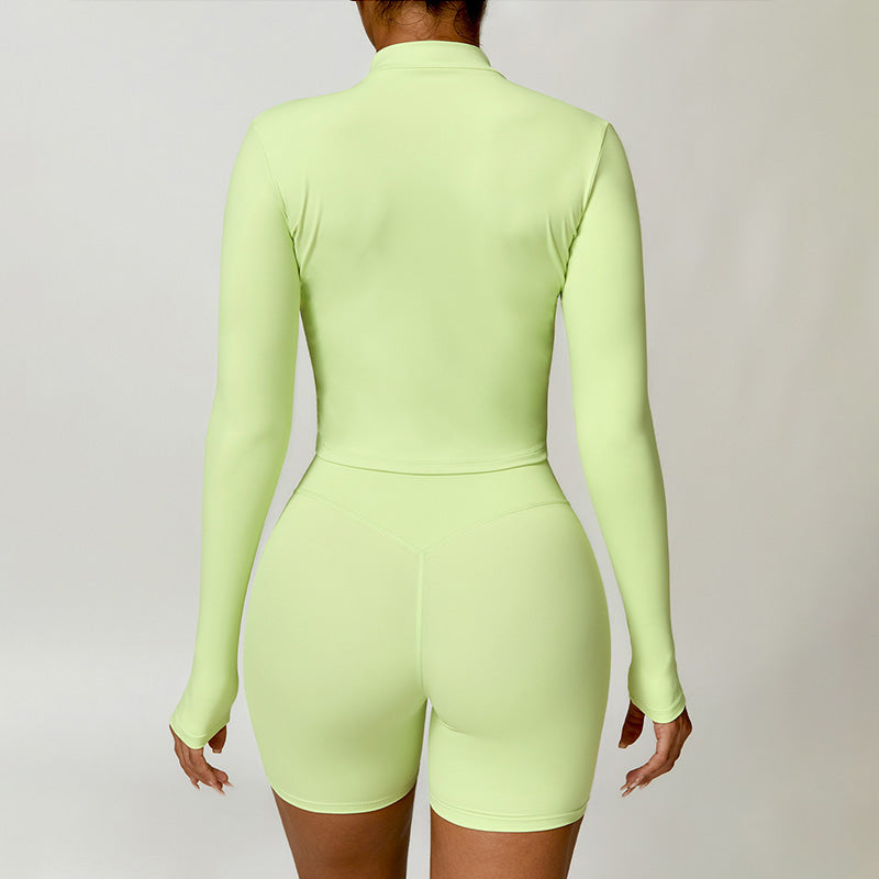 • Collar de soporte seco rápido ultra suave la cremallera completa Nude manga larga chaqueta de yoga y pantalones cortos deportivos de cintura alta