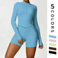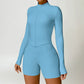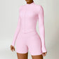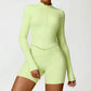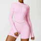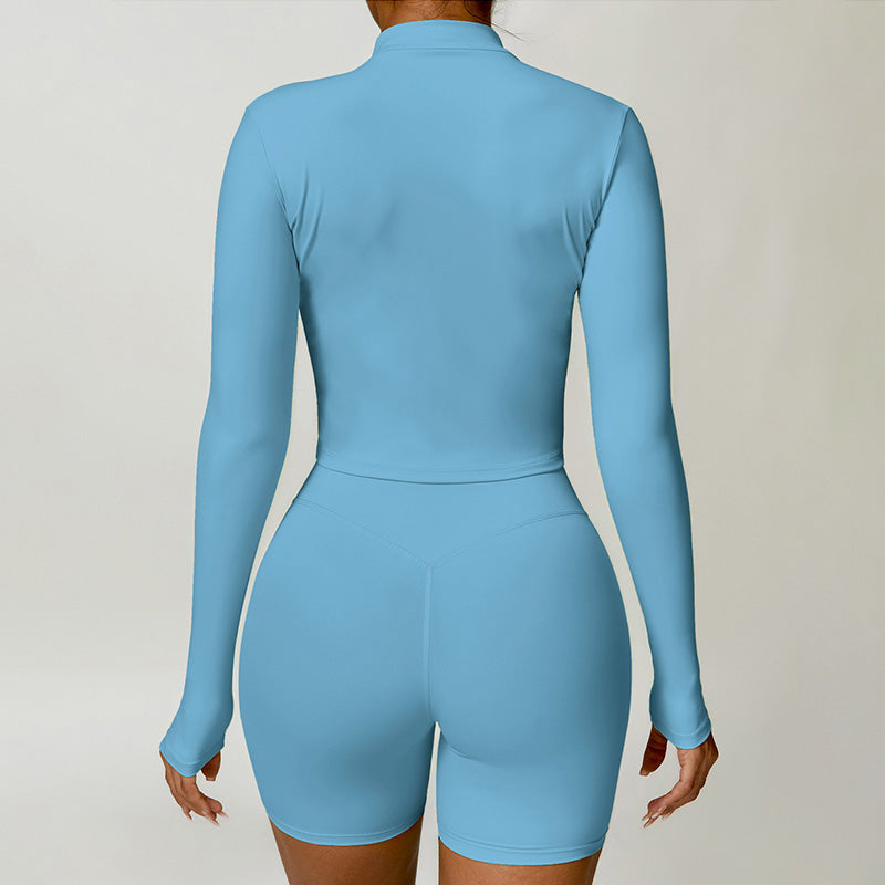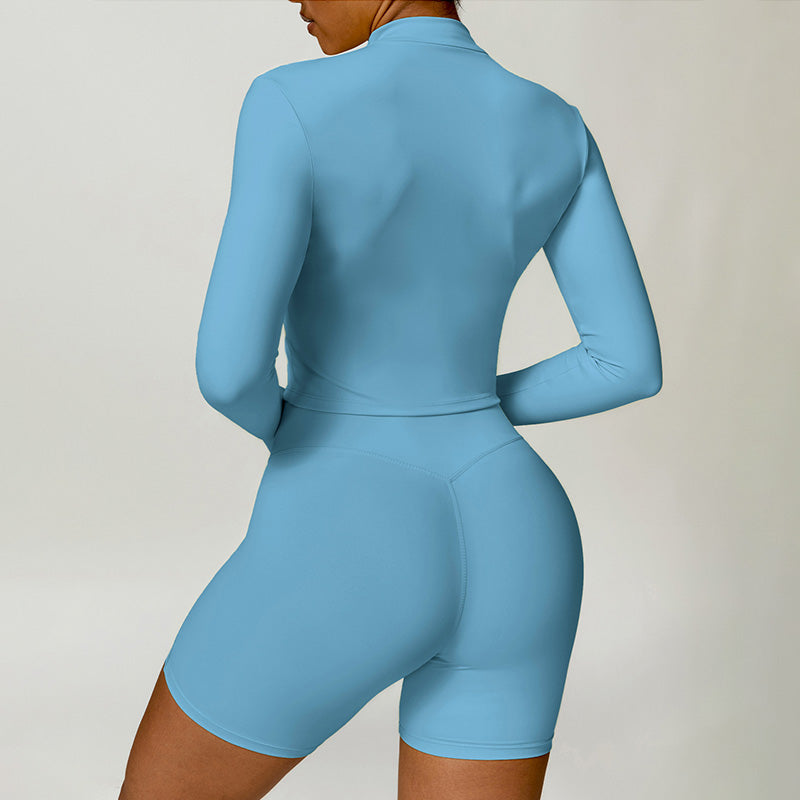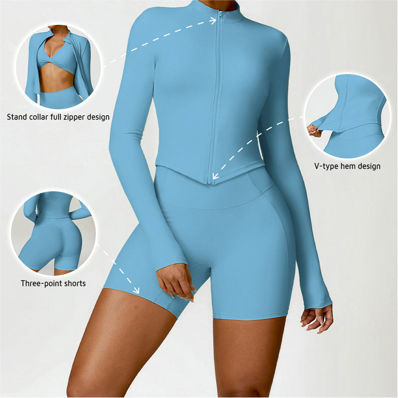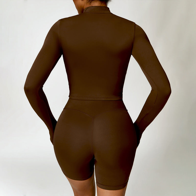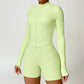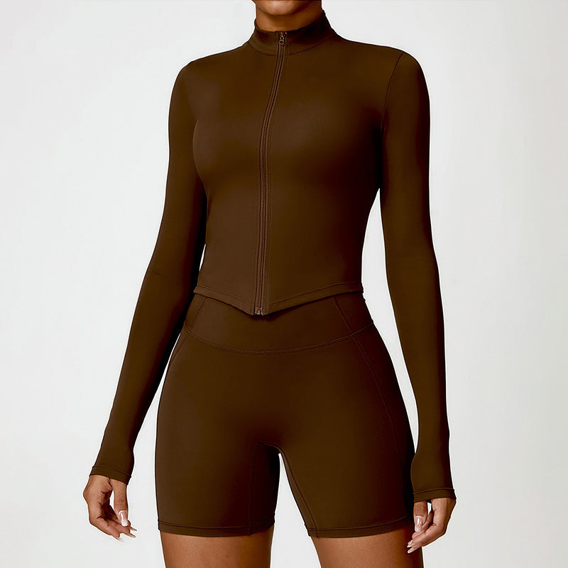 • Collar de soporte seco rápido ultra suave la cremallera completa Nude manga larga chaqueta de yoga y pantalones cortos deportivos de cintura alta