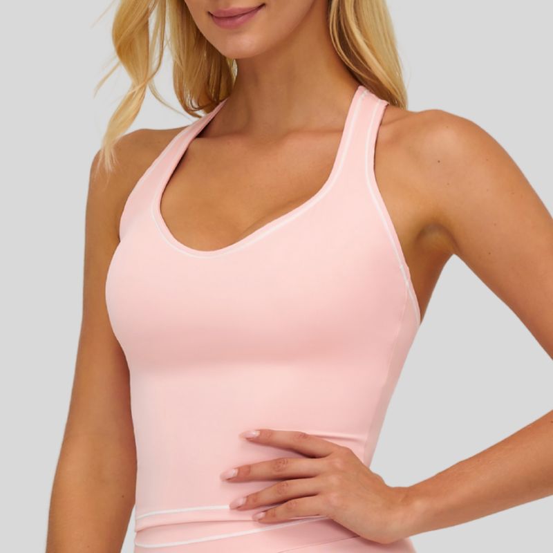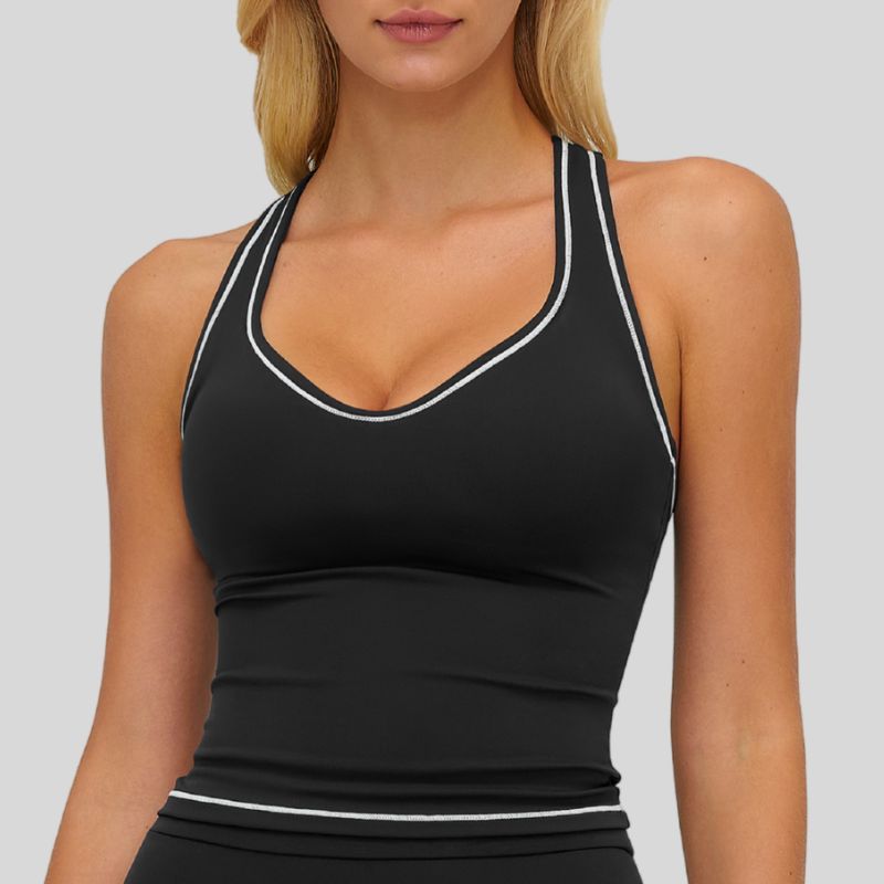 • Contrasting stitching design adds depth and visual interest + racerback design showcases beautiful back lines