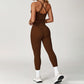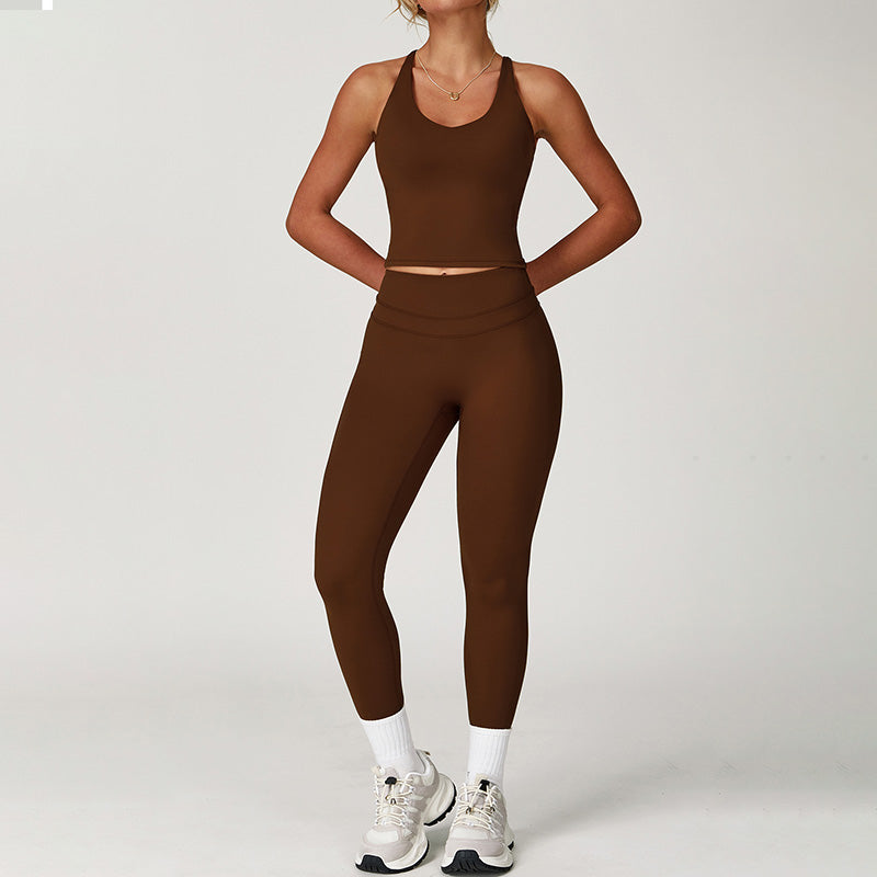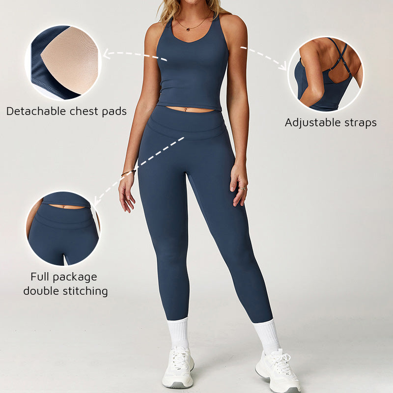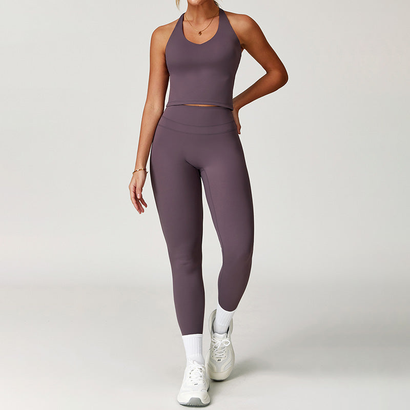 • Camina de tanques de yoga de cepillada de forma cruzada ultra suave y regadeo y leggings de yoga de cintura alta