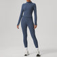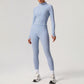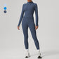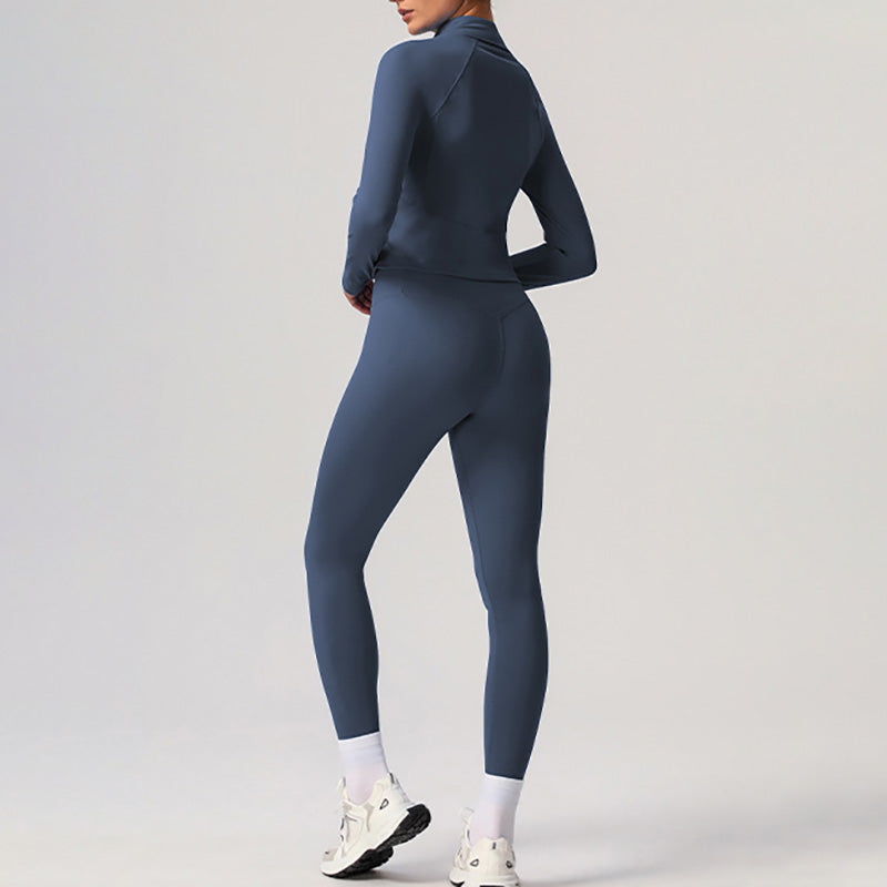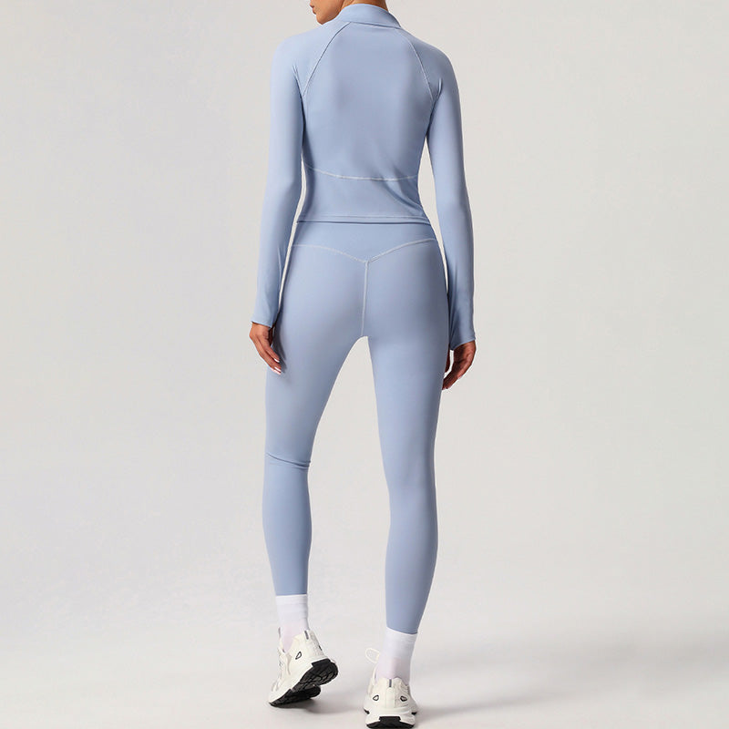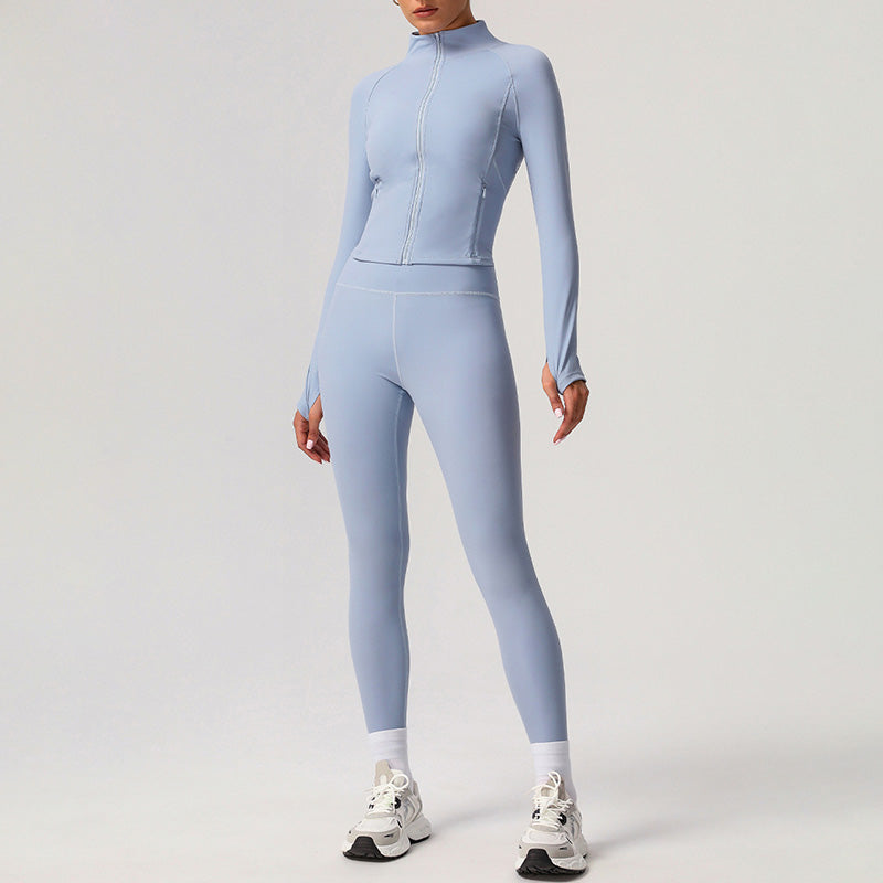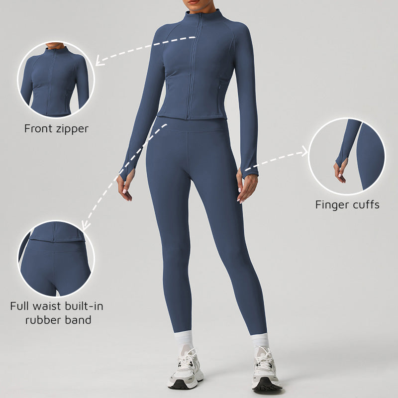 [-] Jackets de fitness con cremallera de cremallera + leggings de cintura alta de 2 piezas