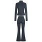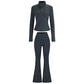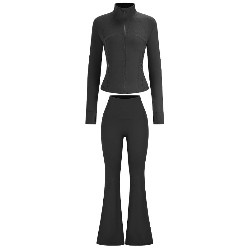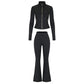 ALL ITEMS>Juega de cremallera llena y deportiva Juego de pantalones de piernas acampanadas (alargar la entrepierna 34 pulgadas)