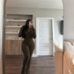 [-] Juega de cremallera llena y deportiva Juego de pantalones de piernas acampanadas (alargar la entrepierna 34 pulgadas)
