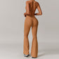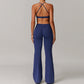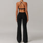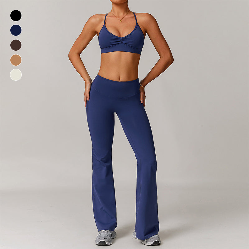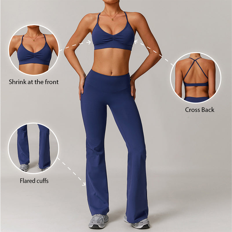 • Cross transpirable Straps delgados Sports Bra y pantalones de piernas acampanadas Diseño