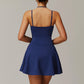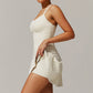 • FAke Two-Peice Diseño + bolsillos de pantalones cortos empotrados para un almacenamiento conveniente + diseño de correa de hombro doble