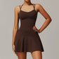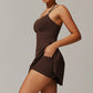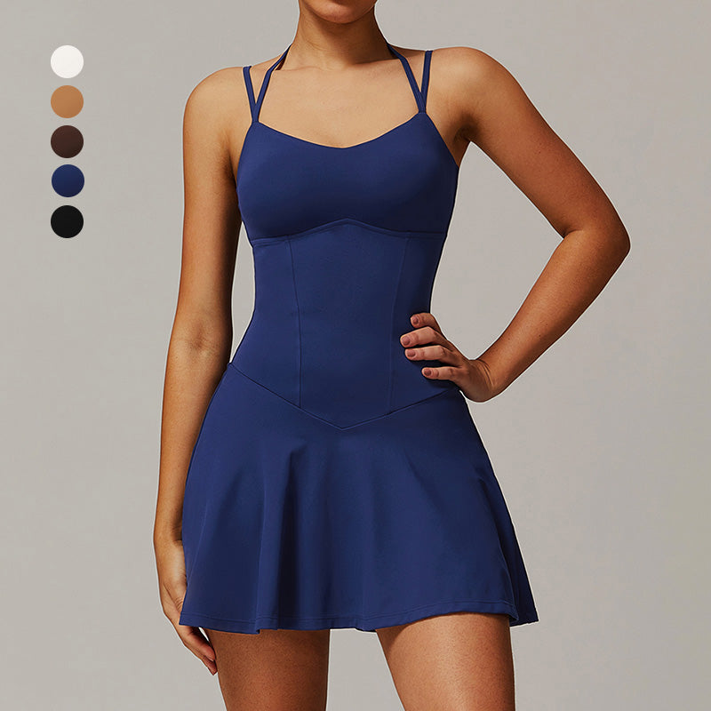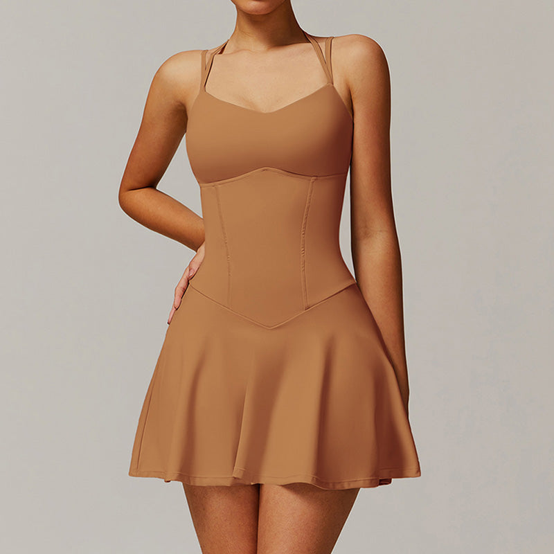 • Diseño halagador de línea A con pantalones cortos anti-exposición incorporados para soporte adicional y conveniente