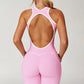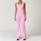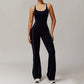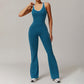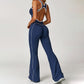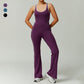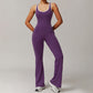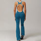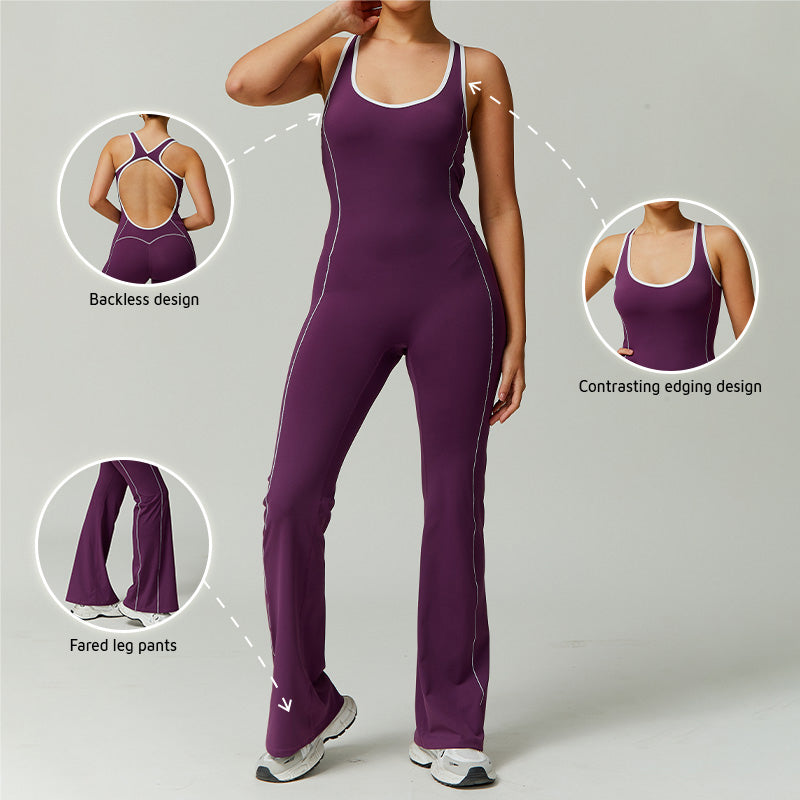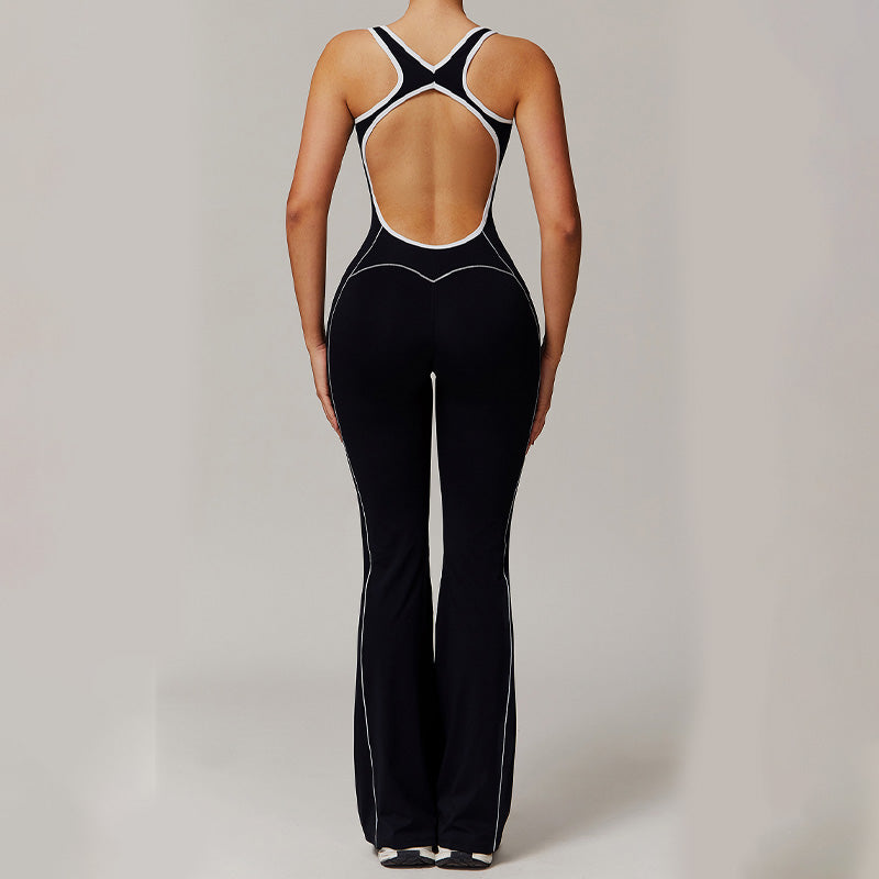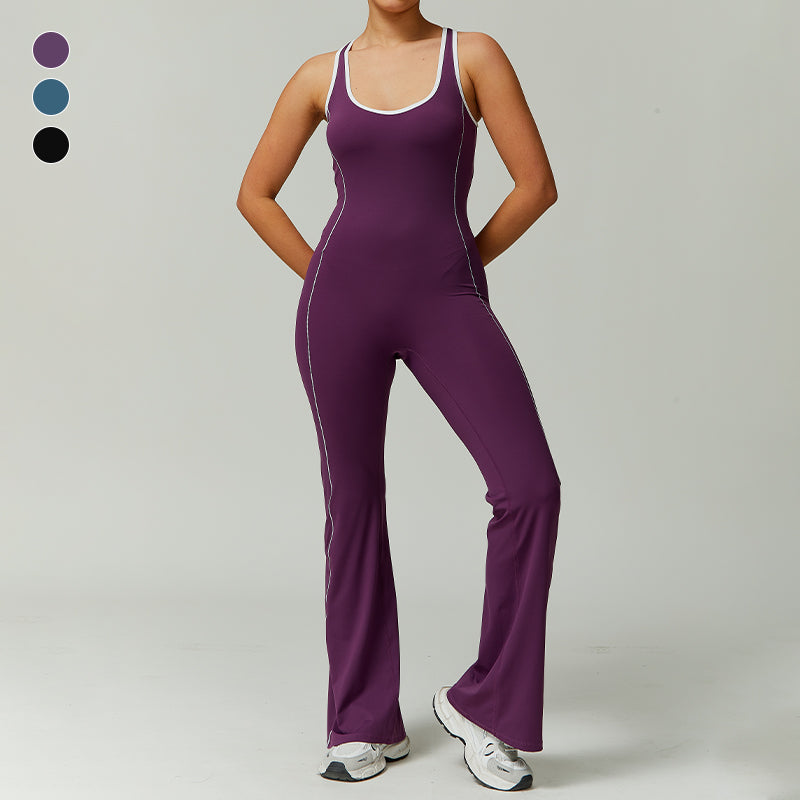 • Traje de yoga de espalda hueco de la cadera con mono acampanado plisado