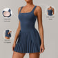• Diseño halagador de línea A con pantalones cortos anti-exposición incorporados para soporte adicional y conveniente