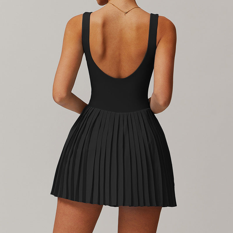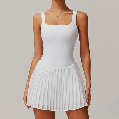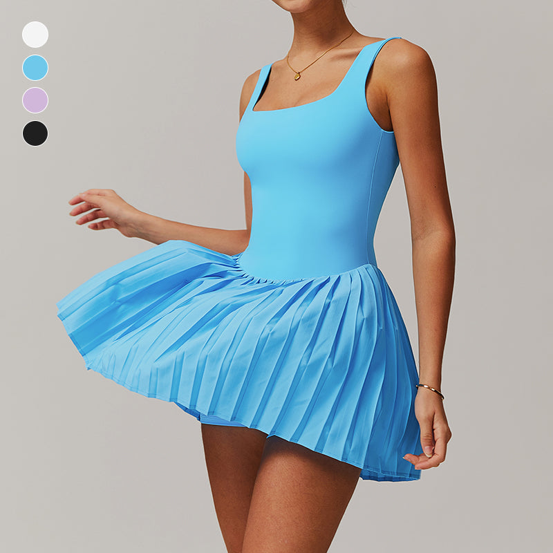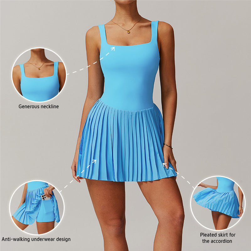 • Vestido de tenis deportivo plisado de bolsillo anti-exposición