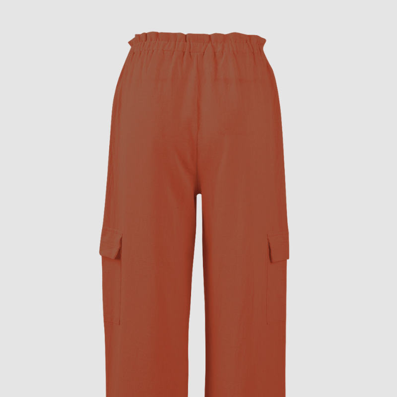 • Women's Solid Color Cotton Linen Loose Drawstring Cargo Wide-Leg Casual Trousers