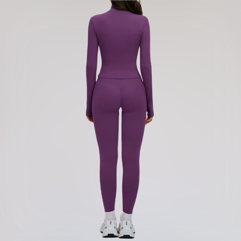 • Women’s slim-fit solid color yoga sports suit includes back cross bra + high-waisted leggings + Slim fit stand collar jacket(3-piece set) Unique Design Points: • Straight from our production line to you. Enjoy factory-direct quality yoga wear. • V-neck design • Cross back beautification effect • Widen bottom elastic band • High waist design, belly wrap and waist locking • Stand collar with full zipper design • Front three-dimensional structural line