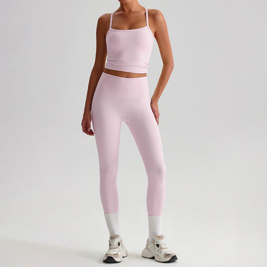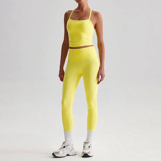 Cross Back Yoga Bras + Sort 2 pièces à taille haute