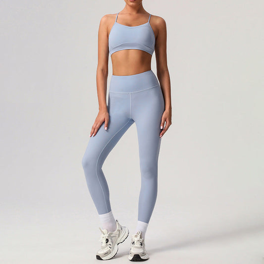 Women's contrasting color sports bra + high-waisted leggings 2-piece set