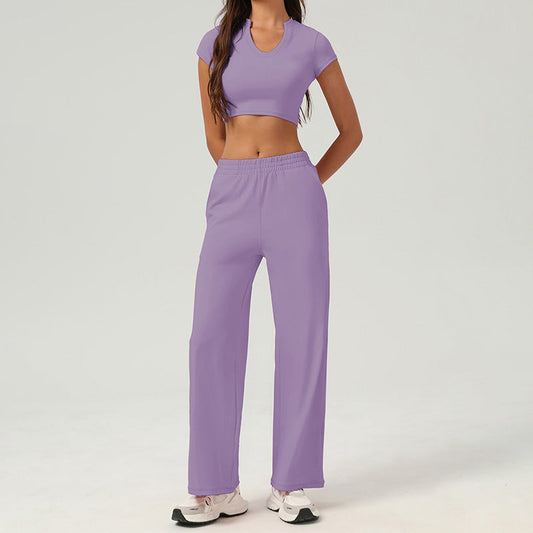 Women's Contrasting Color Wide Strap Sports Bra + leggings 2-Piece Set