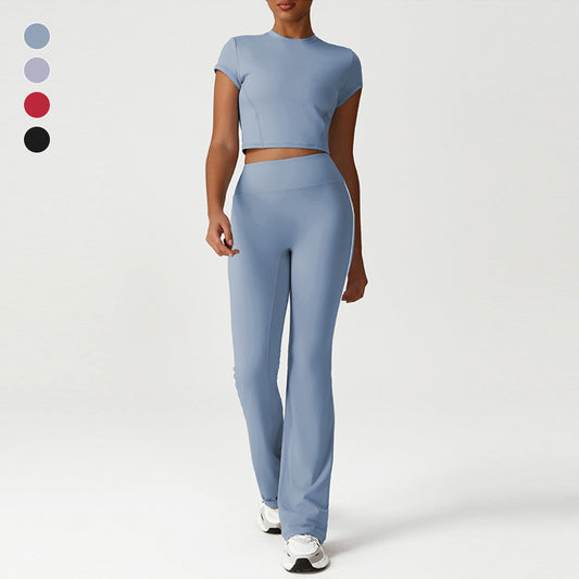 Snug-Fit Cropped T-Shirt + Butt-Lifting Flared Pants 2-Piece Set