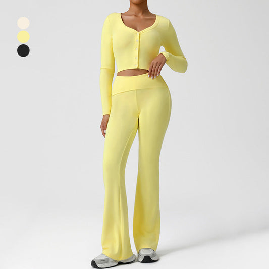 Snug-Fit Cropped Long Sleeve + Flared Leg Pants 2-Piece Set