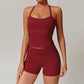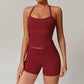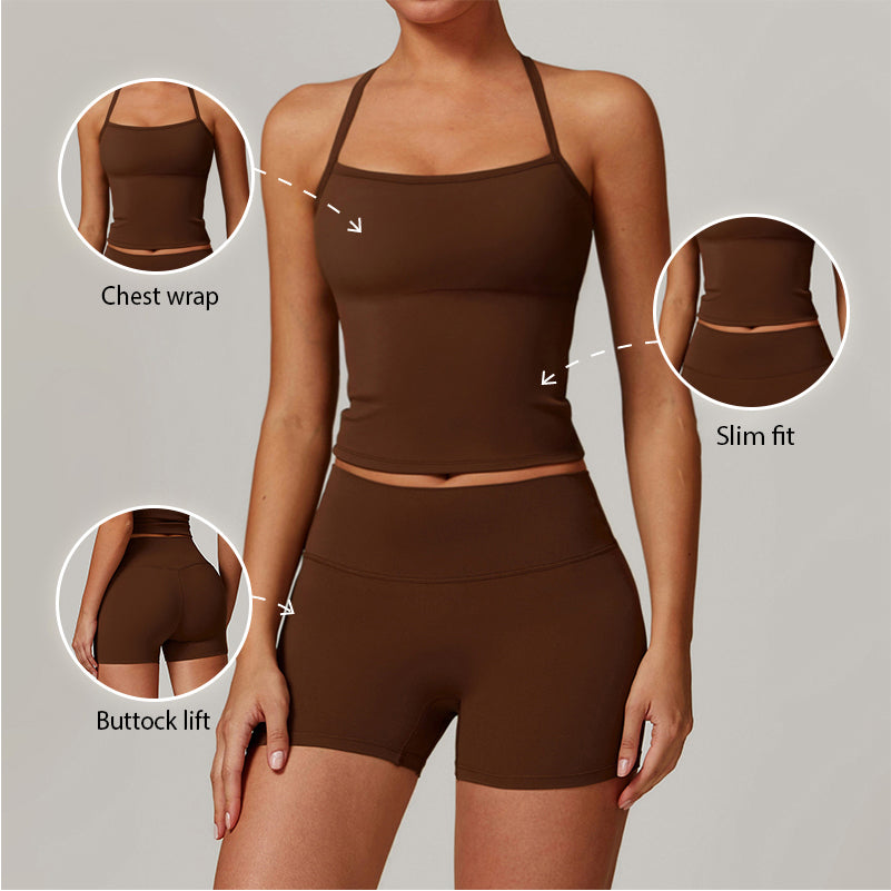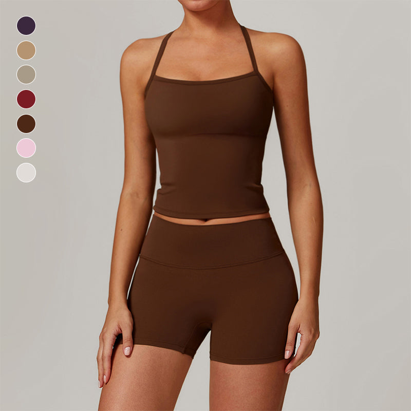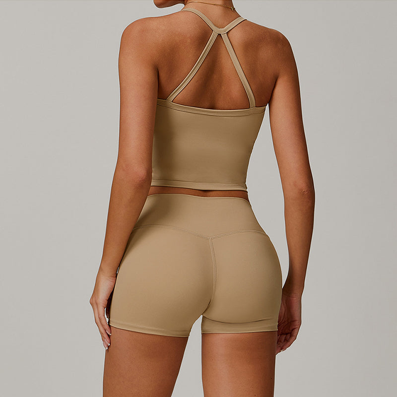• Réservoir de yoga croisé en brossage et scénario à taille haute