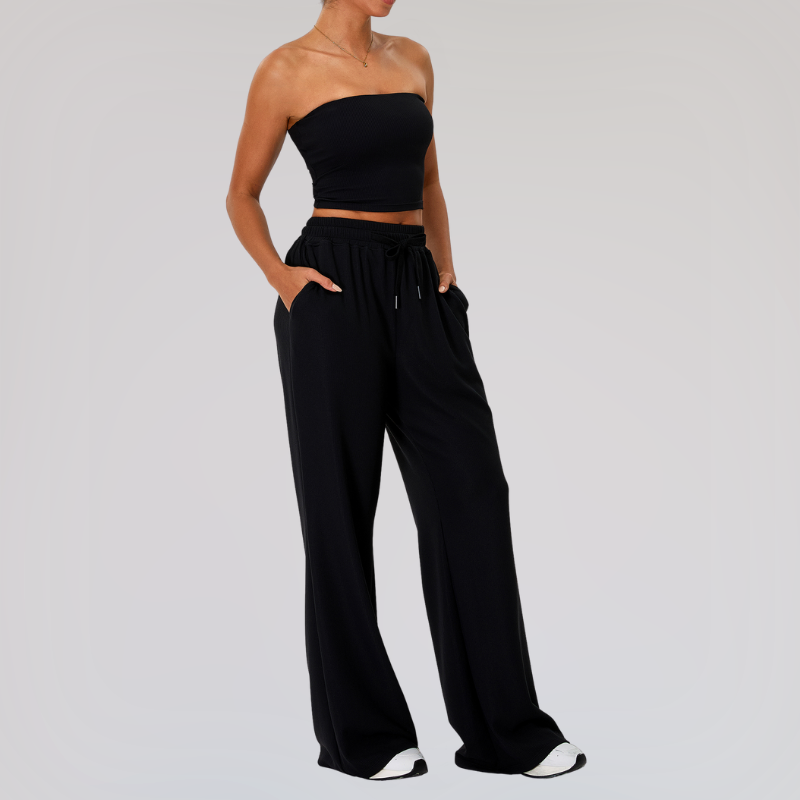 • Relaxed wide-leg pants with adjustable drawstring waist