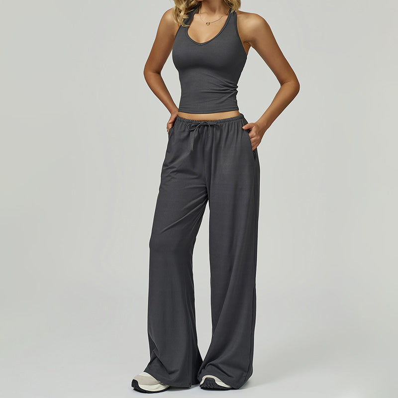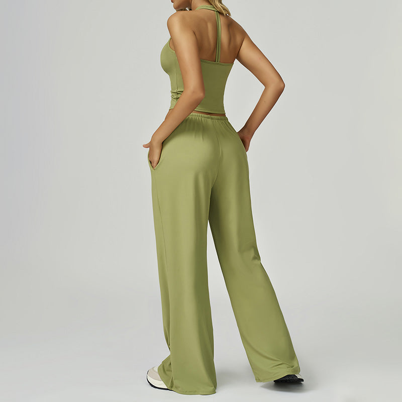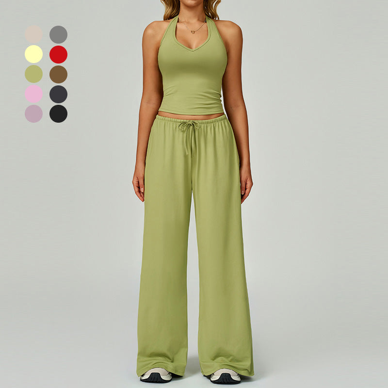 • Débardeur de yoga sportif sans licou respirant + pantalon lâche 2 pièces