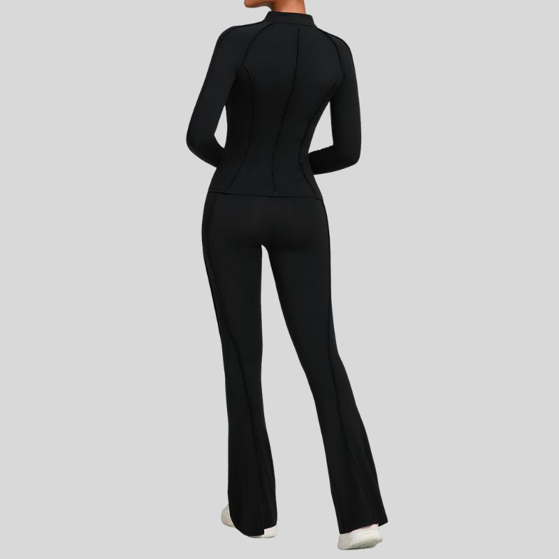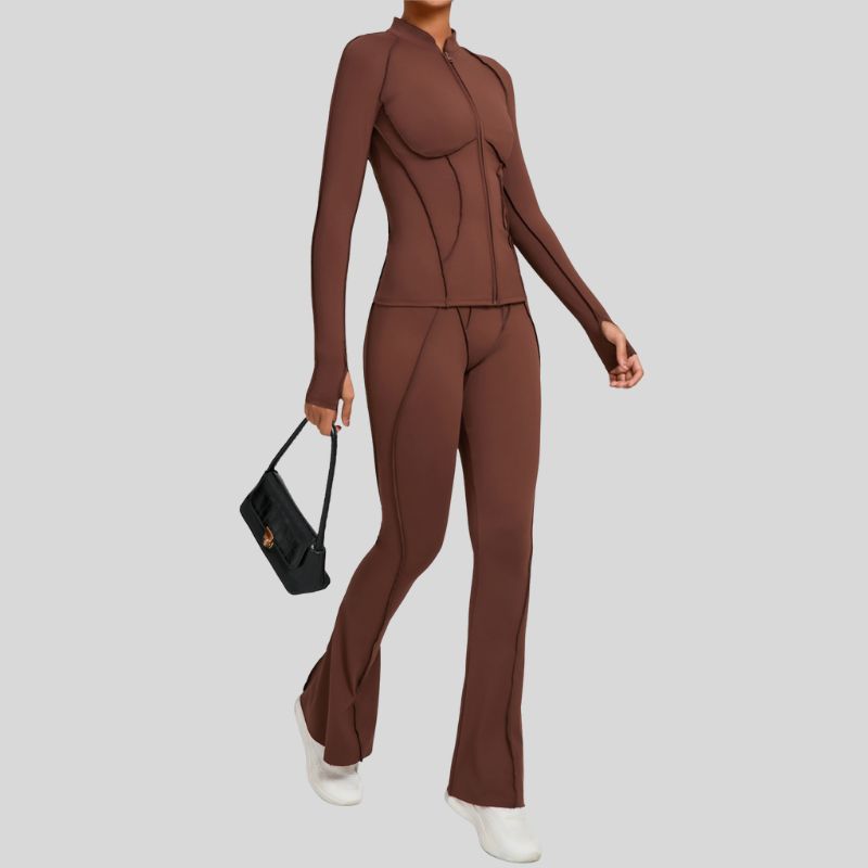 Thumb-buckle zipper jacket + slightly flared pants+2-piece set