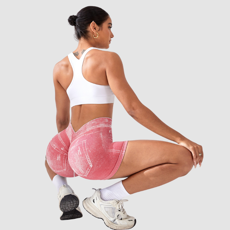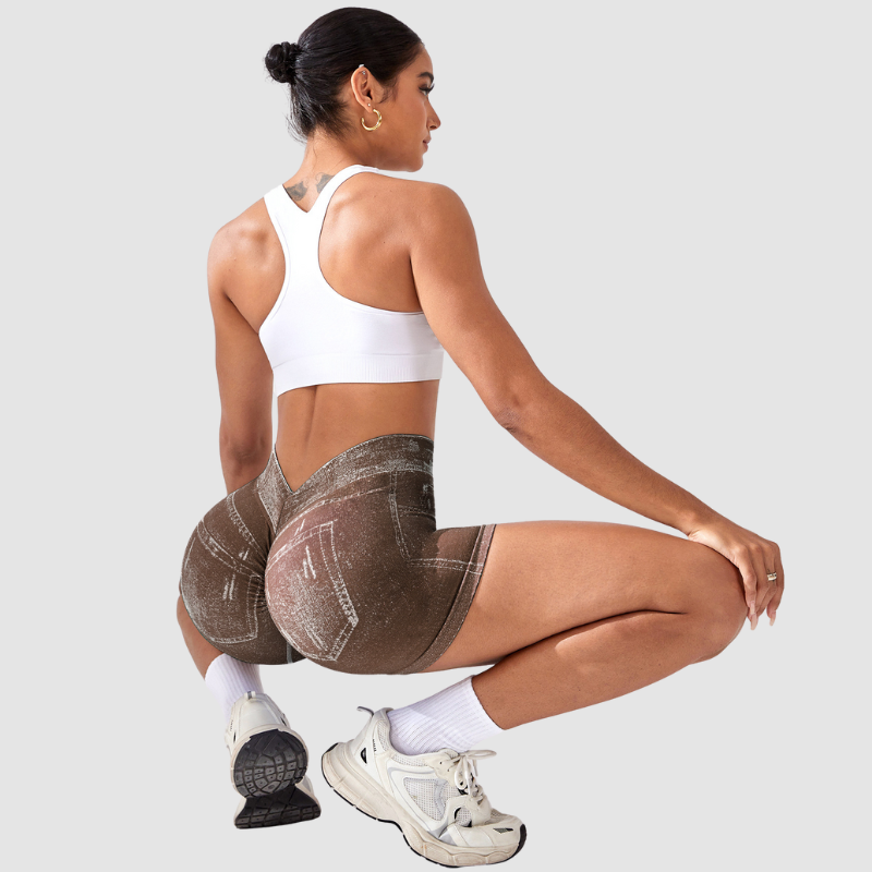• Women's High Waist Faux Denim Seamless Yoga Shorts