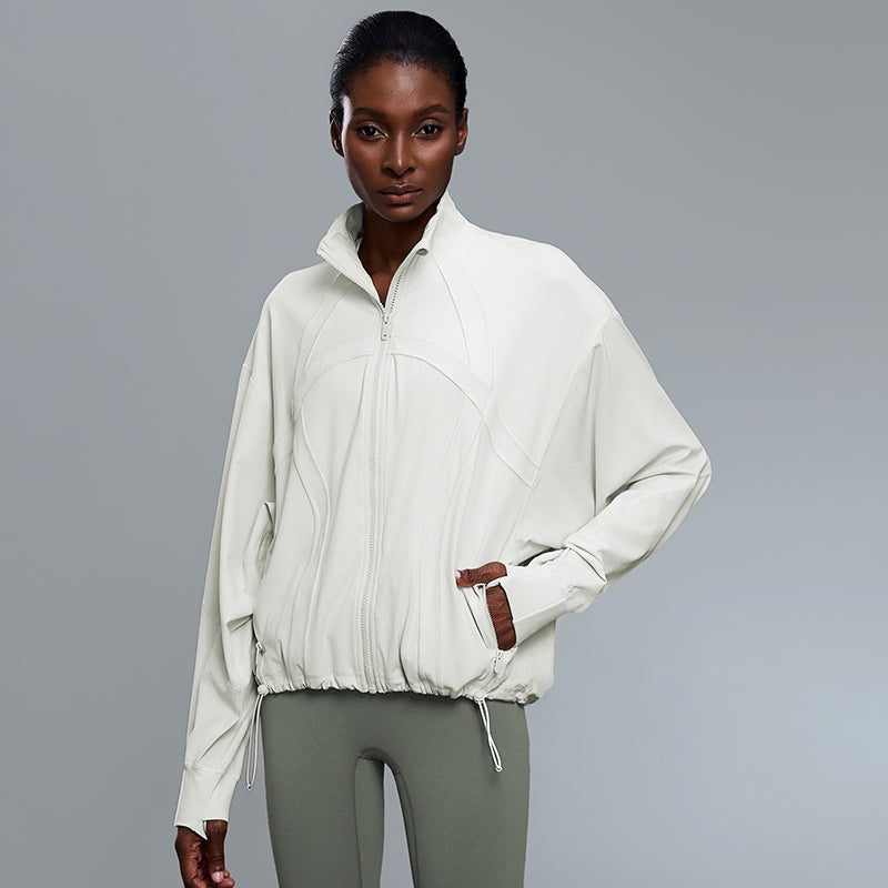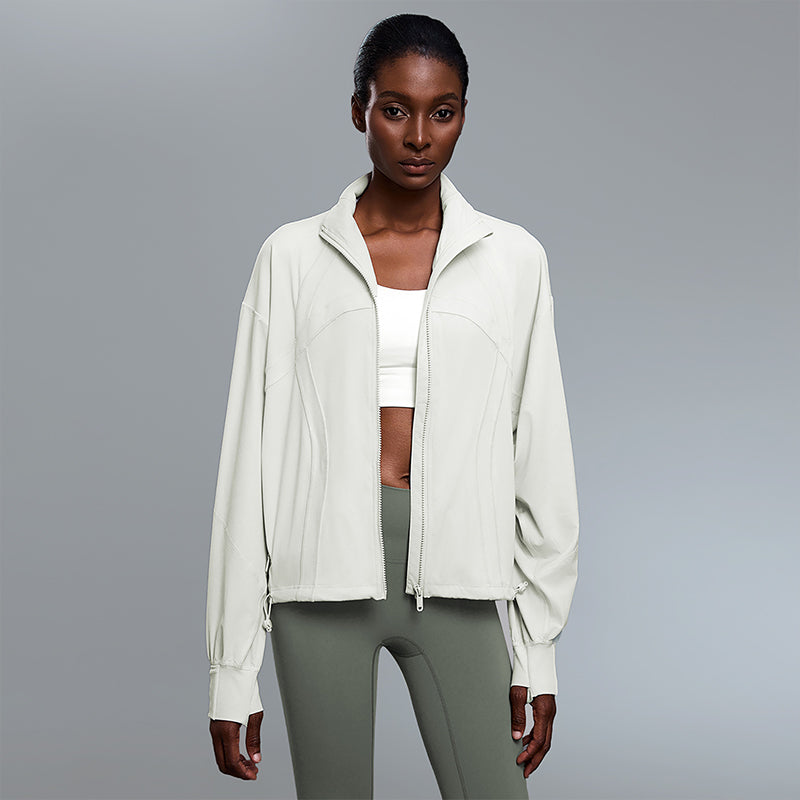 • Women’s thermal jacket with stand collar, adjustable hem and cuffs with thumb design Unique Design Points: • Straight from our production line to you. Enjoy factory-direct quality yoga wear. • Sturched stand-up collar provides wind protection and warmth • Zippered pocket for storage • Cuff thumb buttons • Drawstring adjustable hem for comfort without being tight