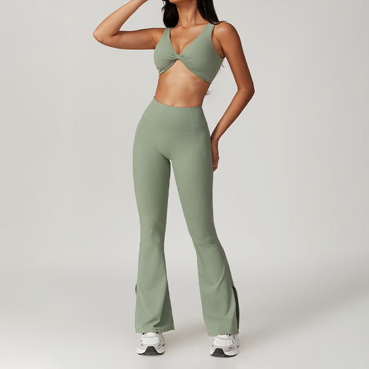 Long sleeve Sports top + Flared Leg pants 2-piece set
